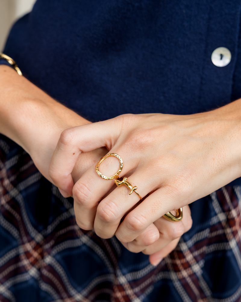 ¡Un anillo impresionante que forma parte de nuestra colección Summer Postcards! Anillo grueso martelé con...