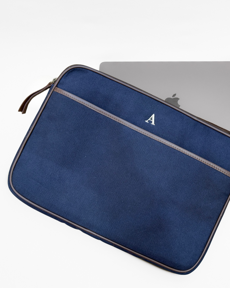 ¡Un básico que viajará contigo siempre! Funda personalizada de tela de lona en azul marino....