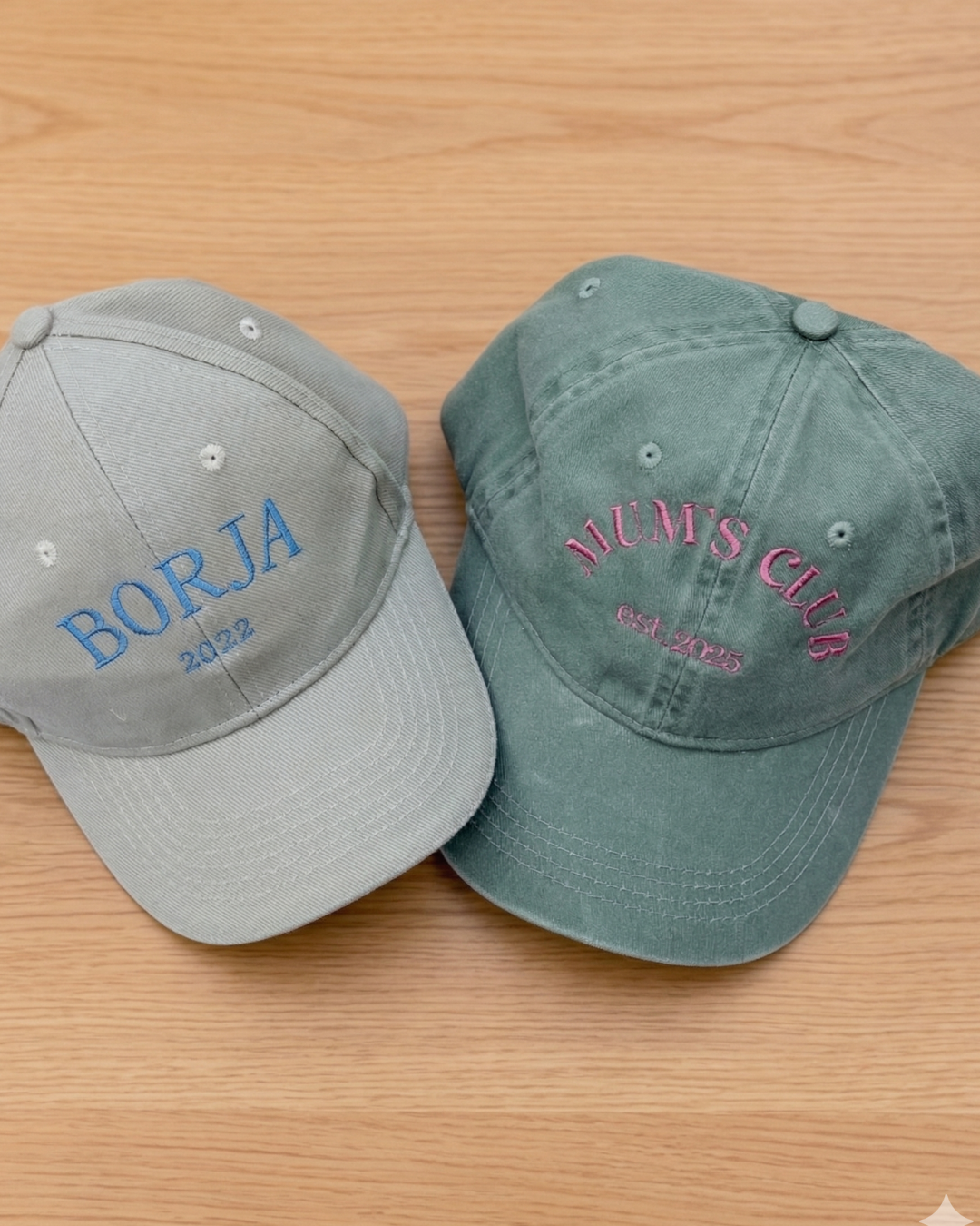 Pack of customised DAD and MINI caps with bold lettering
