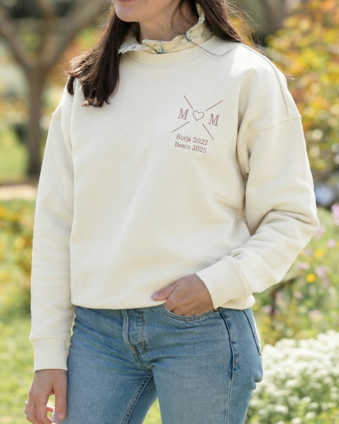 Personalised “MOM” Light beige Heart Sweatshirt (women's)