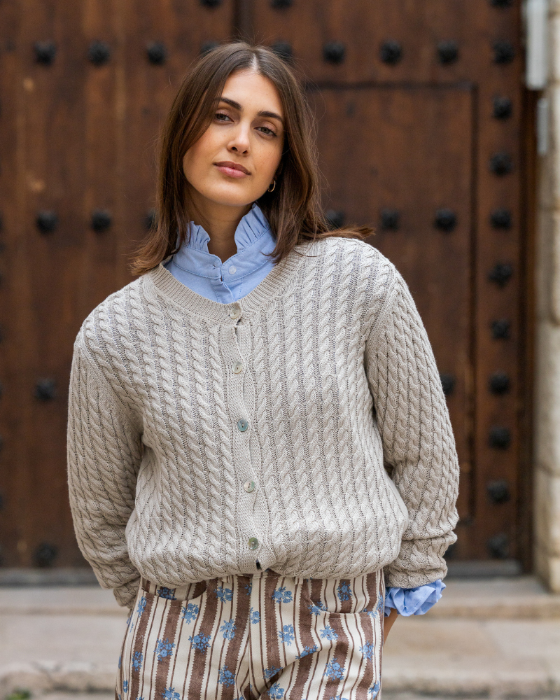 The Blanca beige Jumper is a feminine and timeless piece crafted from soft cotton knit....