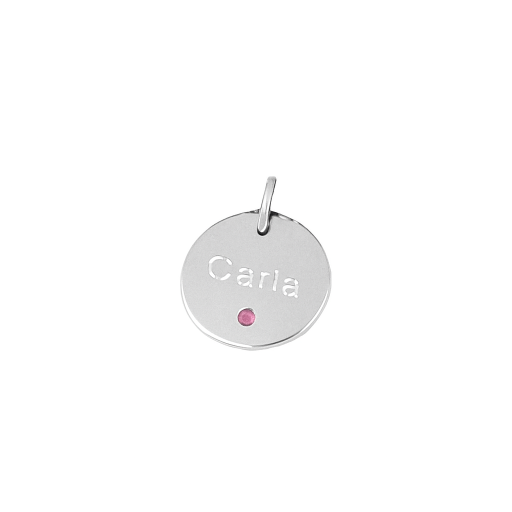 Charm plaque engraved with the text of your choice with a fuchsia zirconia.