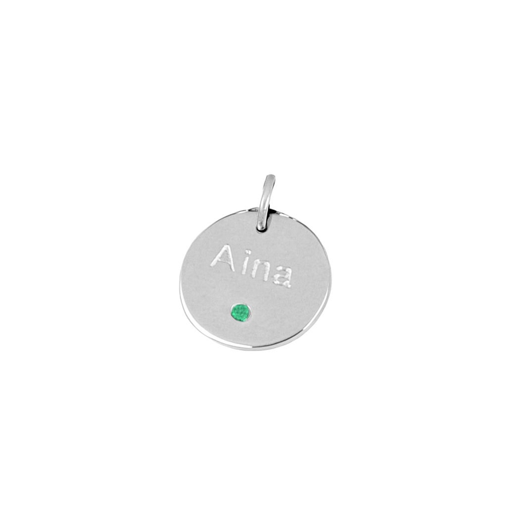 Charm plaque engraved with the text of your choice with a green zirconia.