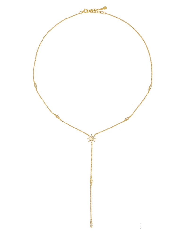 Delicate necklace with a vertical drop and a central zirconia star, with diamonds falling down the chain.