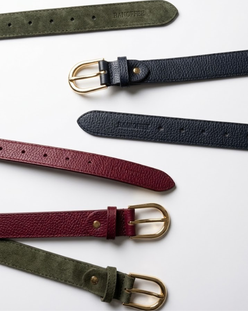 - Textured leather belt.