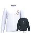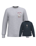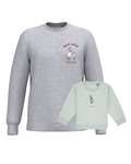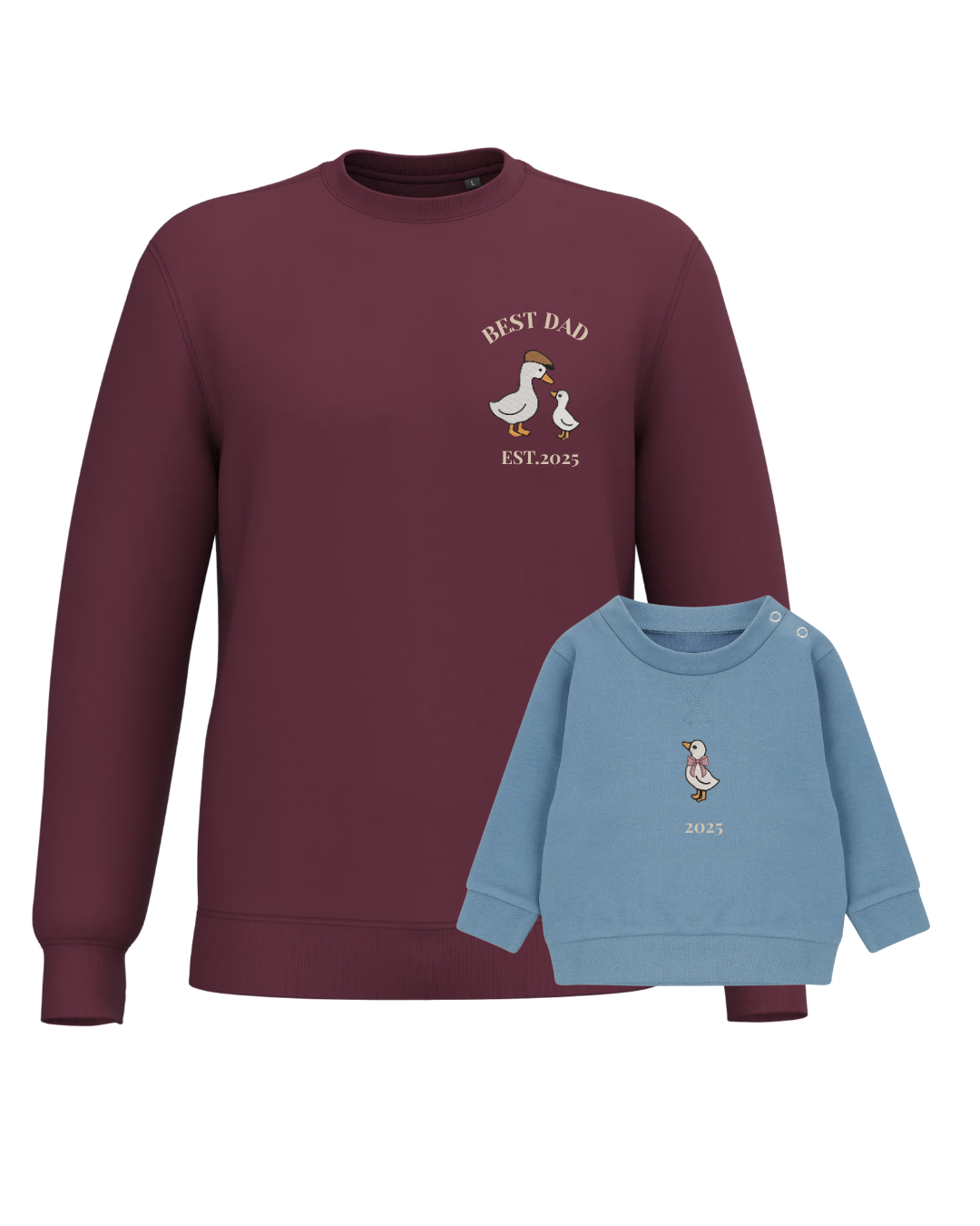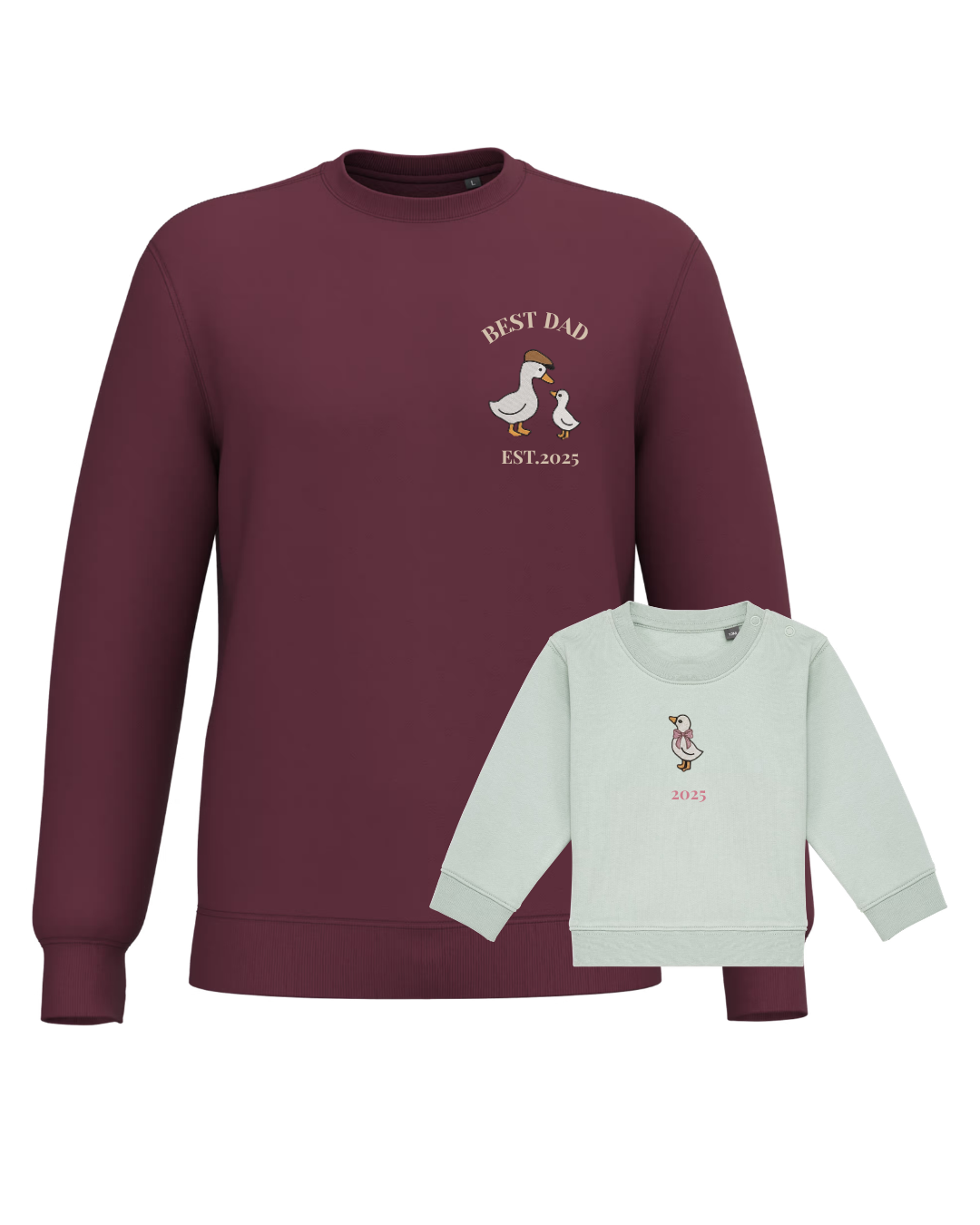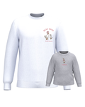 The embroidery is done on the left chest and back of the adult sweatshirt, and in the centre of the children's sweatshirt.