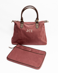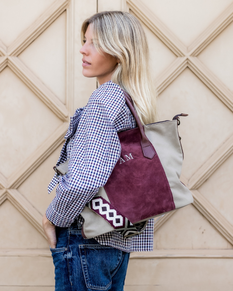 Made of maroon canvas with chocolate brown leather handles. A timeless staple that will never go out of style.
