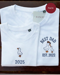 Each sweatshirt is embroidered individually, with its ducks and its phrase.