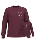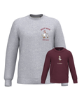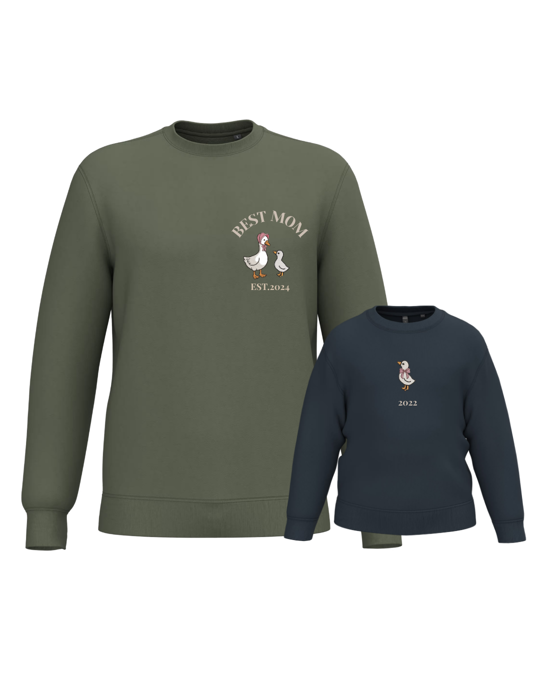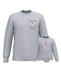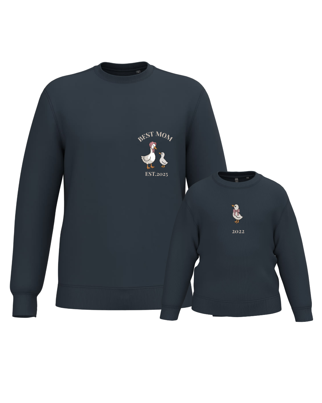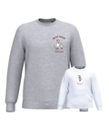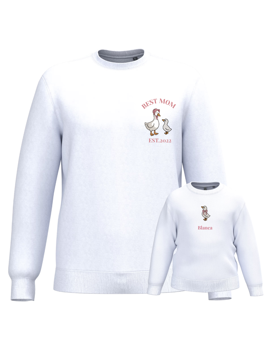 The embroidery is done on the left chest and back of the adult sweatshirt, and in the centre of the children's sweatshirt.