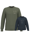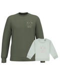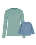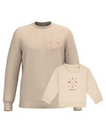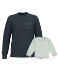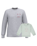 The embroidery is done on the left chest and back of the adult sweatshirt, and in the centre of the children's sweatshirt.