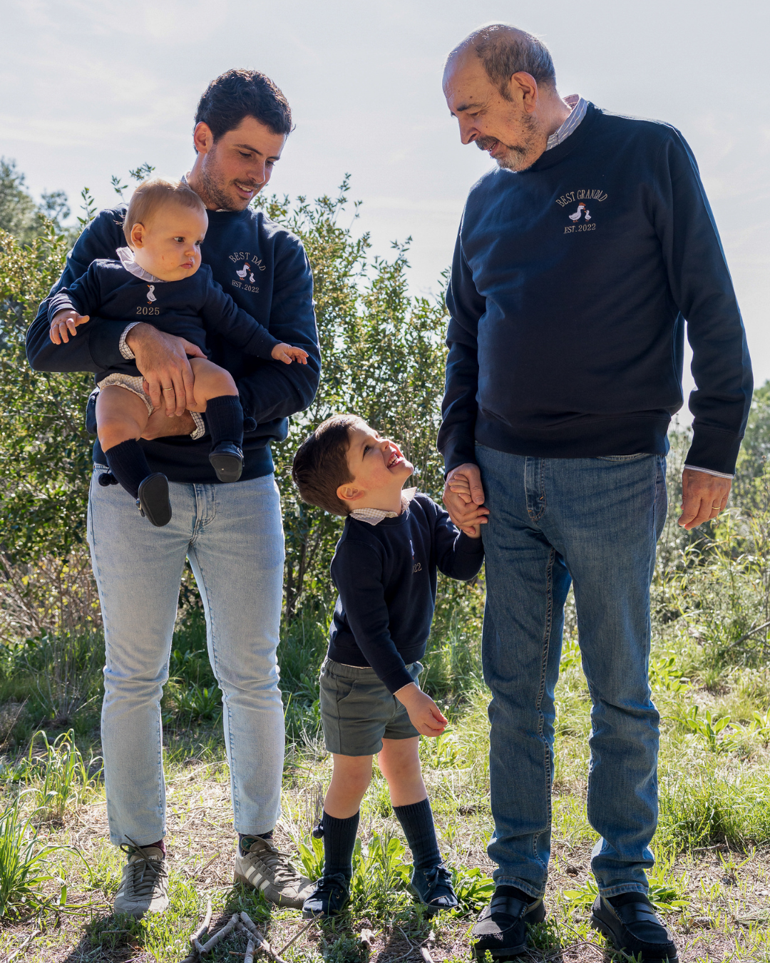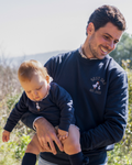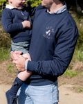The embroidery is done on the left chest and back of the adult sweatshirt, and in the centre of the children's sweatshirt.