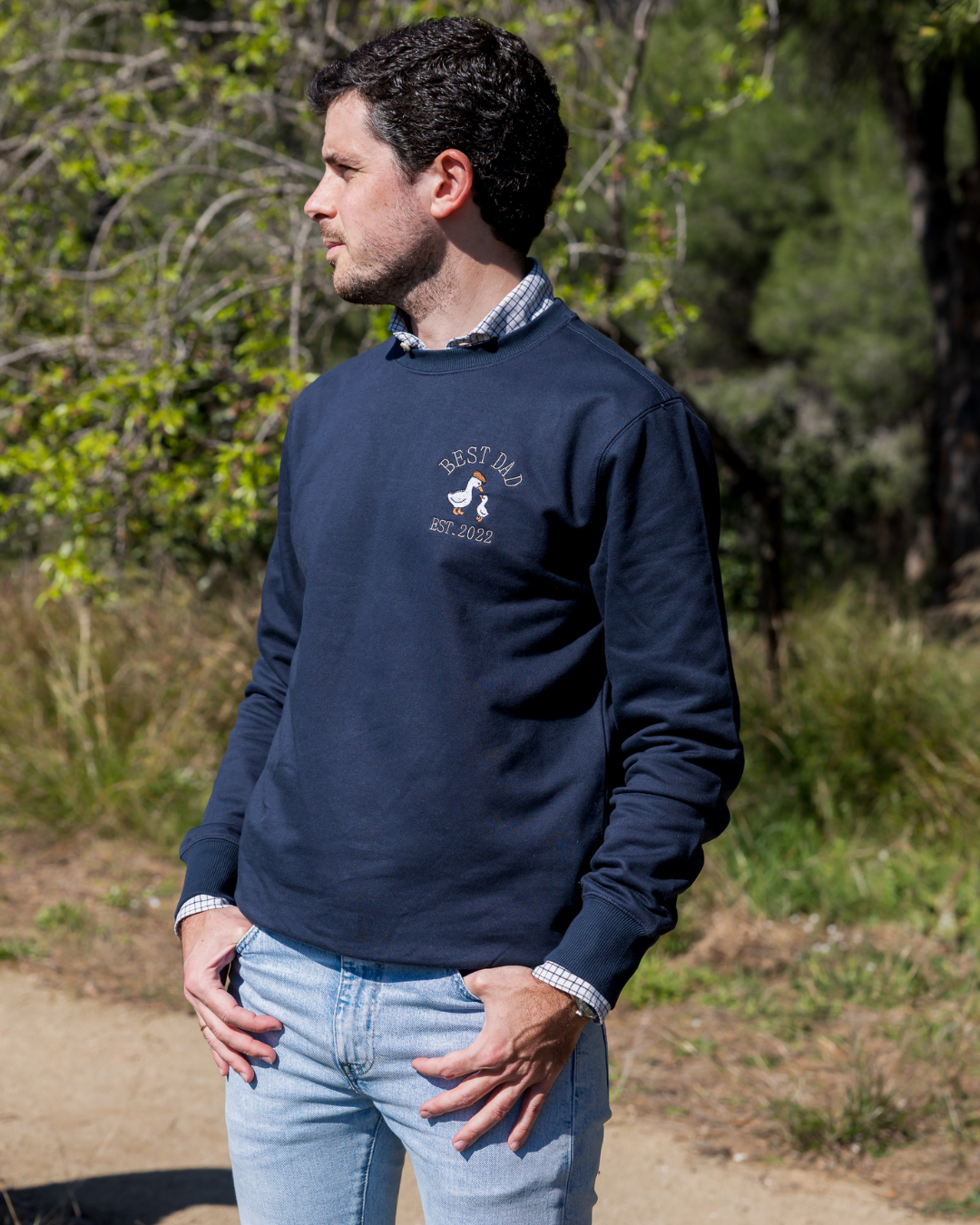 Each sweatshirt is embroidered individually, with its ducks and its phrase.