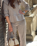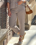 Straight ankle trousers in a checkered fabric made of a tasty fabric. It has a rubberised waistband at the back for a better fit to your figure with button fastening and two front pockets that stylise the leg.