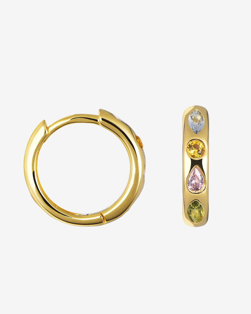 Gold Hoop Earrings with Multicolor Zirconia