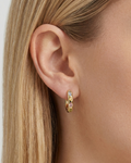 With a brilliant finish and gold plating, they stand out for their carefully set multicolor zirconia, which provides light, color, and a sophisticated touch without being excessive. Their structured hoop design makes them a modern and timeless jewel.