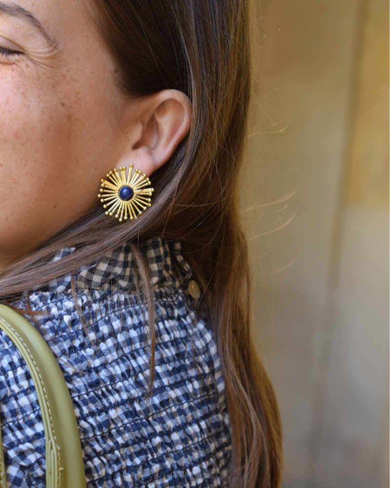 Lapis Lazuli Flower Earrings in Steel