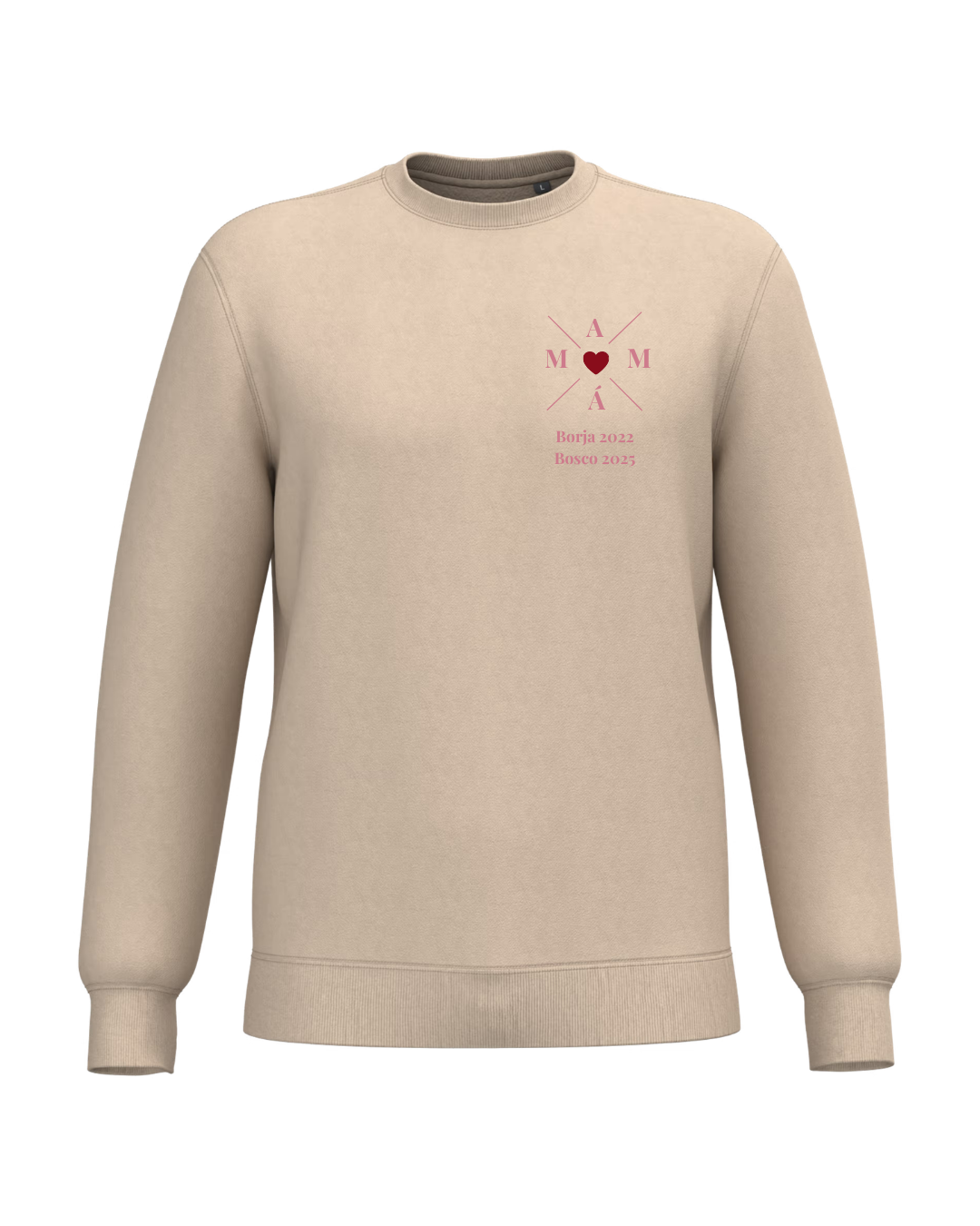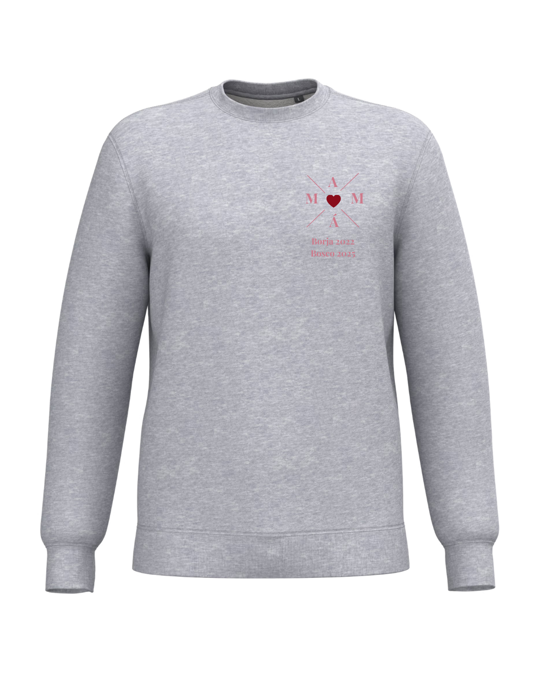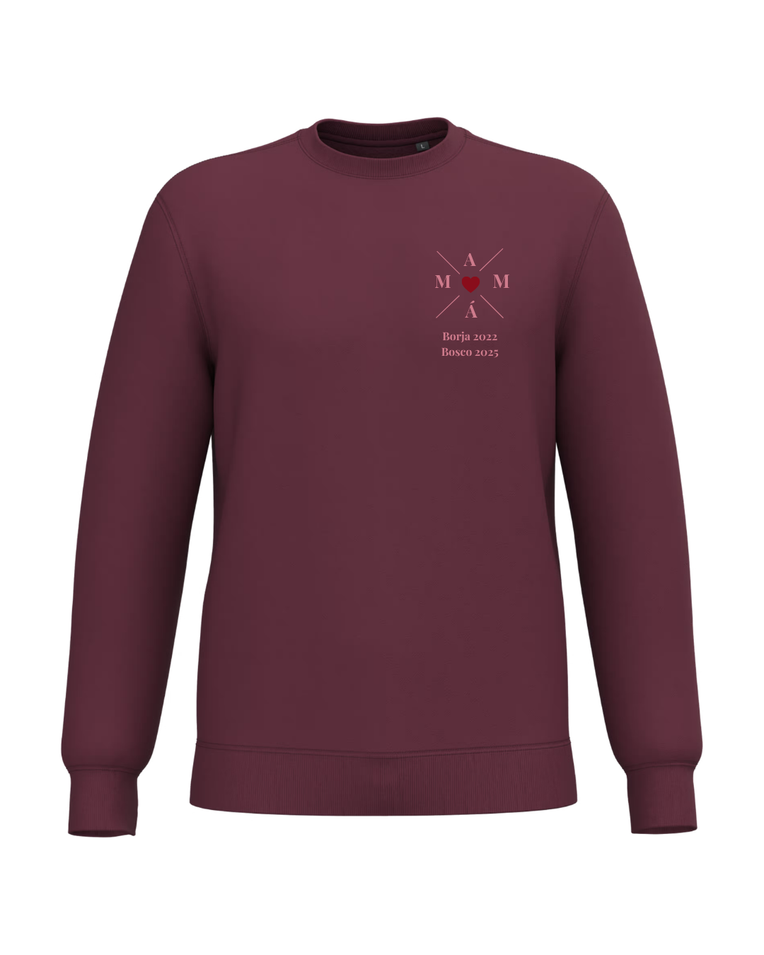 Personalised cross sweatshirt with a maroon heart in the middle.