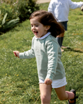 - A mint green personalised boys' sweatshirt featuring a cross with a heart in the centre and the word “MINI”, with a phrase underneath.