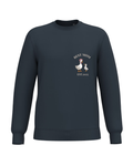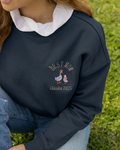 - A customisable unisex navy blue sweatshirt featuring a mum duck, one, two or three ducklings (boy or girl) and two names, phrases or dates.