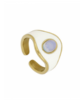 Anillo grueso y abierto de esmalte blanco con piedra central en calcedonia azul. Ajustable.