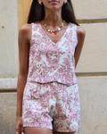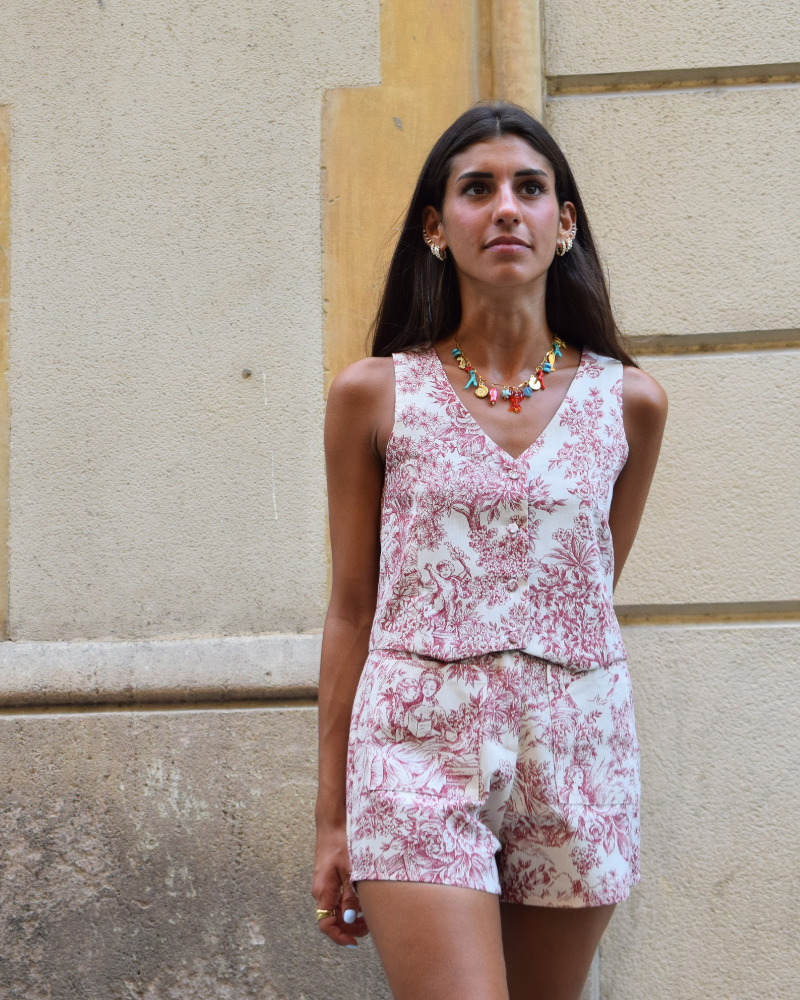 Crear un total look en tendencia ahora es posible en Banoffee Bcn. Esta vacaciones no puede faltar entre tus looks nuestra Bermuda Toile de Jouy Grante.