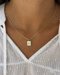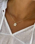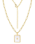 Collar de cadena de eslabones con charm blanco con circonita en medio.