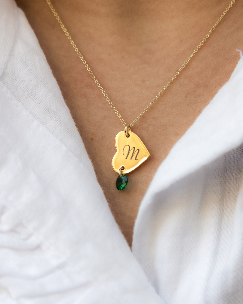 Collar personalizado grabado con inicial y una circonita.