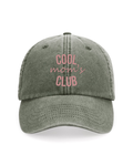 Gorra kaki con visera bordada con la palabra Cool Mom's Club en letras gruesas y una frase.