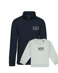 - Cuello zip con cremallera en la de adulto y cuello redondo en la de niño, cintura y puños en canalé de algodón / Lycra®