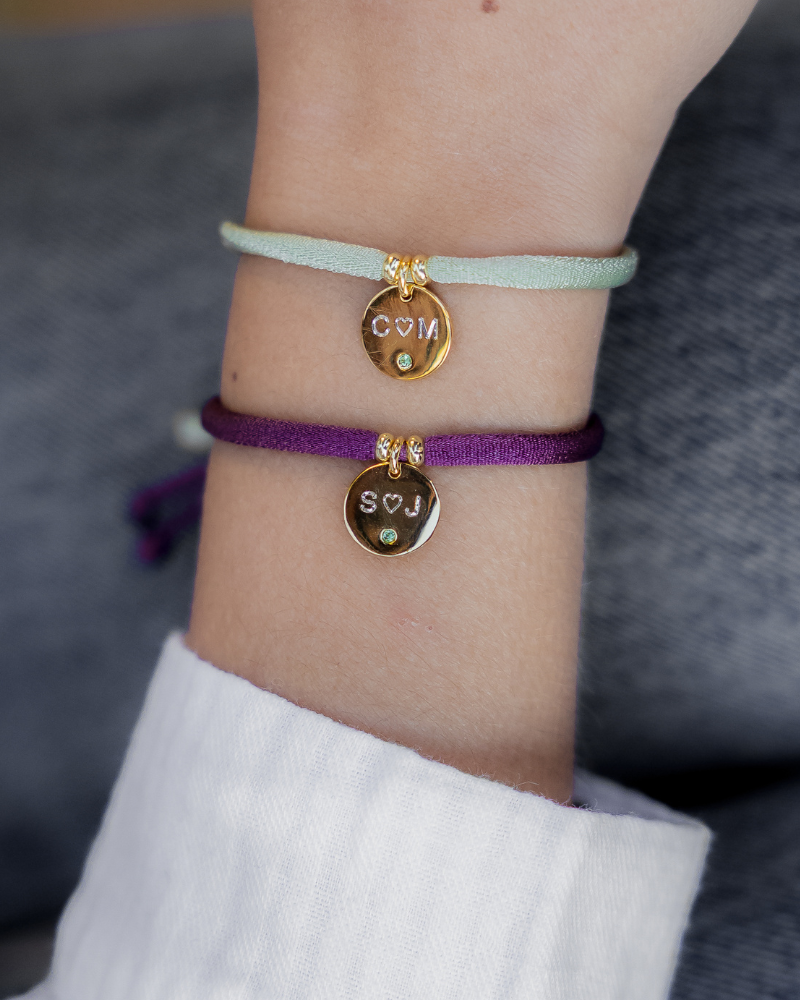 Pulsera personalizada con las iniciales grabadas y un corazón en medio grabado.