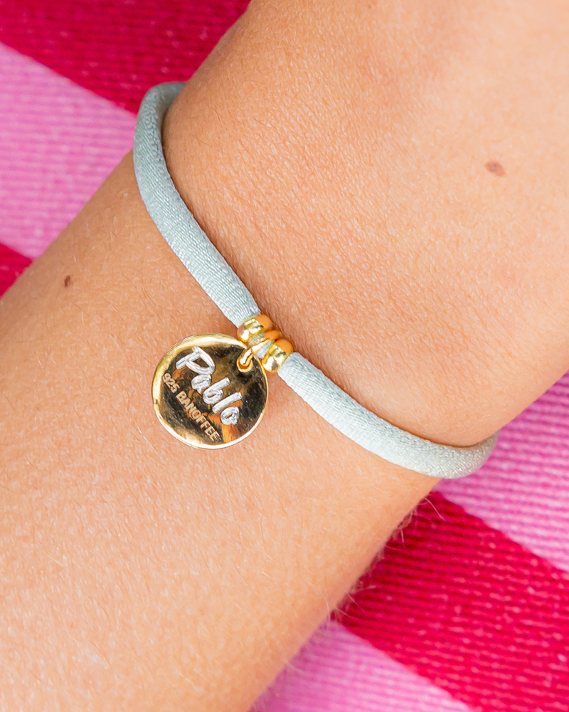 ¿Buscas un regalo único, cómodo y especial? Nuestra pulsera rizo es perfecta para sorprenderla. Su original cinta elástica fruncida se adapta perfectamente a la muñeca, acompañada de una plaquita grabada con un patito niño o niña y una circonita de color, y grabado trasero personalizado. ¡Ideal para llevar a diario!