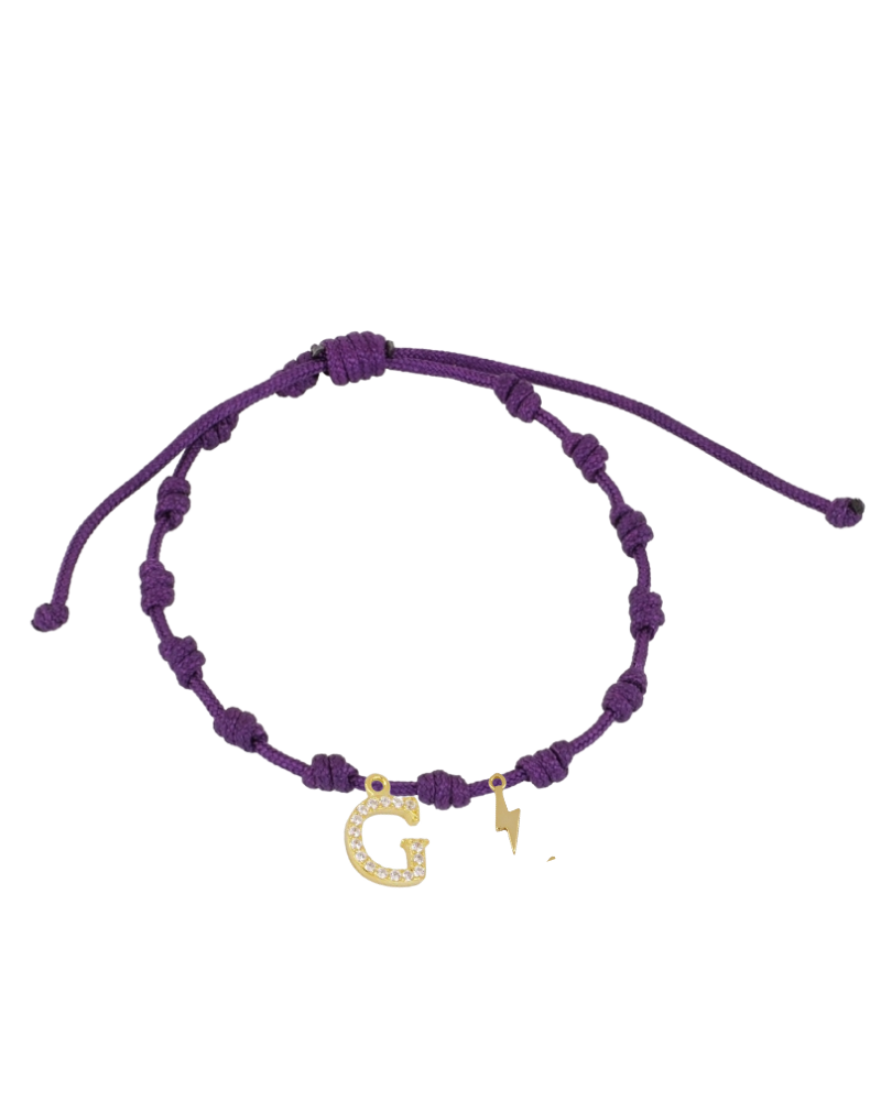 Pulsera solidaria con inicial y rayo