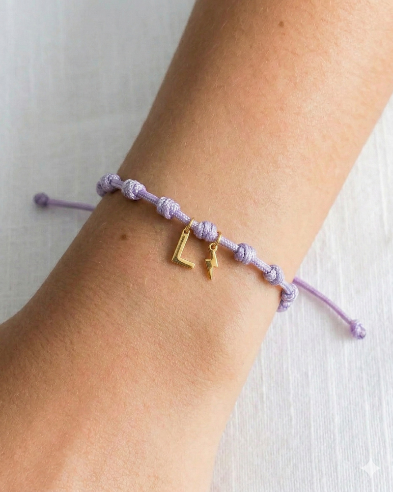 Pulsera solidaria con inicial y rayo