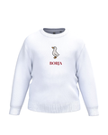 - Sudadera de niño personalizada blanco con bordado de un pato y una frase.